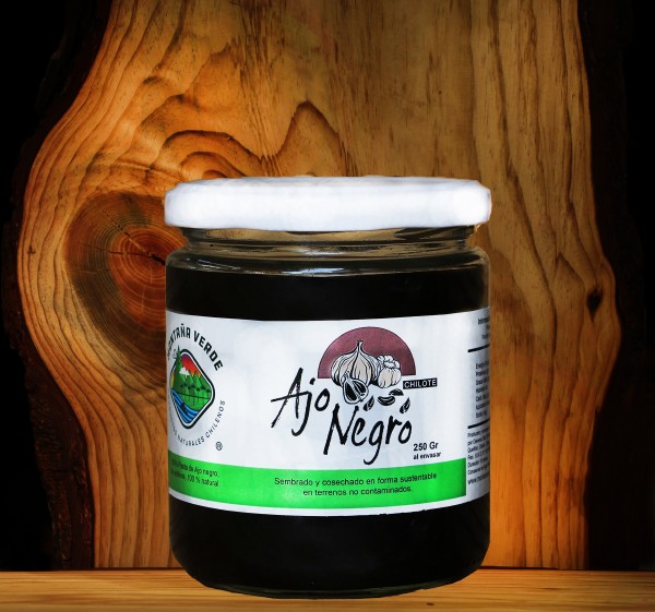 - Pasta de Ajo negro Chilote, sembrado y cosechado en forma sustentable en terrenos no contaminados.
